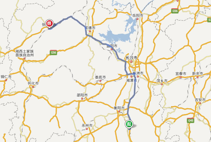 耒陽去張家界自駕車自助游線路圖全程高速):