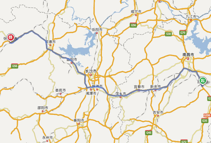 撫州去張家界自駕車自助游線路圖全程高速):
